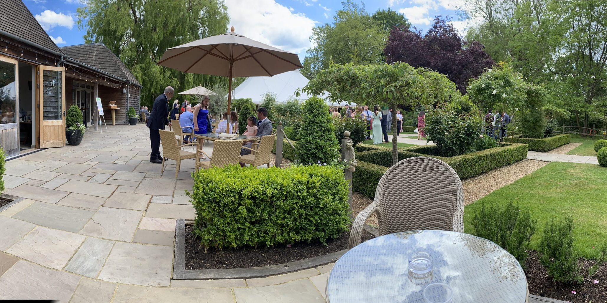 Following the wedding ceremony, I then headed into the main dining area to check on the Wedding Breakfast system, which includes radio microphones for the Speeches. This particular day, the speeches took place prior to the meal which is often the case if the people standing up to talk are nervous. The Speeches were very well received, although I was quietly annoyed when the Best Man refused to use the microphone and everyone subsequently struggled to hear him! As soon as the Speeches were done, I kicked off the low level background music (chosen by the Bride & Groom in this case) and went for a chill in the gardens before the evening festivities began.